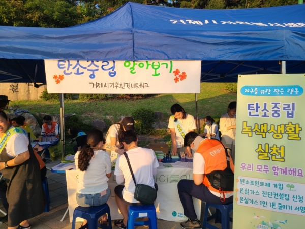 [금요저널] 거제시는 지난 26일 독봉산웰빙공원에서 기후위기에 대응하고 온실가스를 줄이기 위한 탄소중립 녹색생활 실천 캠페인을 진행했다.
