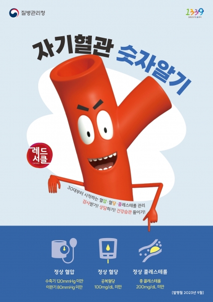 ‘자기혈관 숫자알기’는 자신의 혈압·혈당·콜레스테롤 수치를 정확하게 알고 관리하면 심뇌혈관질환을 예방할 수 있다는 취지로 ‘혈압 120/80mmHg, 혈당 100mg/dL, 총 콜레스테롤 200mg/dL 미만’으로 유지하면 혈관 건강을 지킬 수 있다.