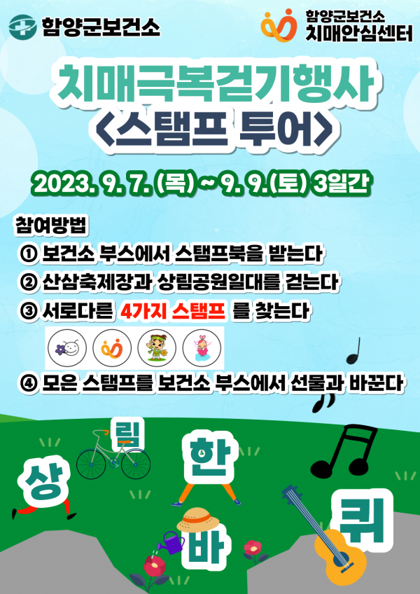 [금요저널] 함양군보건소 치매안심센터는 오는 9월 7일부터 9월 9일까지 3일간 치매극복 걷기 스탬프투어 ‘상림한바퀴’를 실시한다.