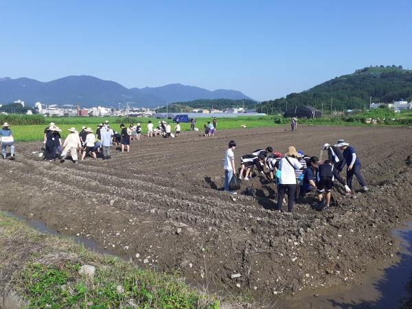[금요저널] 뜨거웠던 지난 8월 25일 ‘거제시 4-H 나눔체험포’에서는 4-H회원 60여명이 참여한 가운데 가을감자를 심었다.