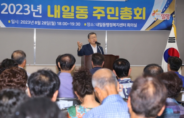 주민총회는 주민의 의견을 수렴해 발굴·계획한 내년 사업을 논의하고 주민투표를 통해 사업을 결정하는 절차로써 이번 주민총회에서는 2024년 내일동 주민자치 역량사업인 밀양관아 달빛음악회 개최를 포함한 주민자치회계획을 의결했다.