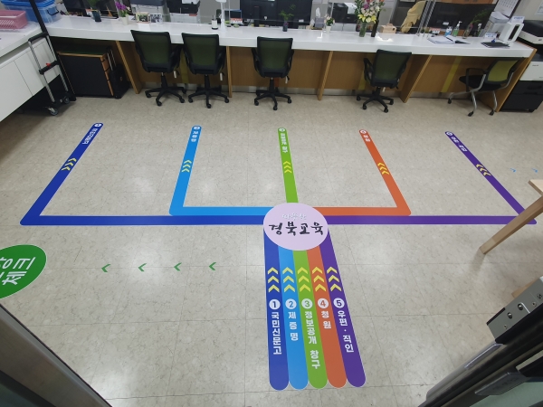 [금요저널] 경북교육청은 본청 민원실을 찾는 내·외부 모든 방문객의 편의 향상을 위해 민원실 바닥에‘업무 안내 유도선’을 설치했다고 31일 밝혔다.