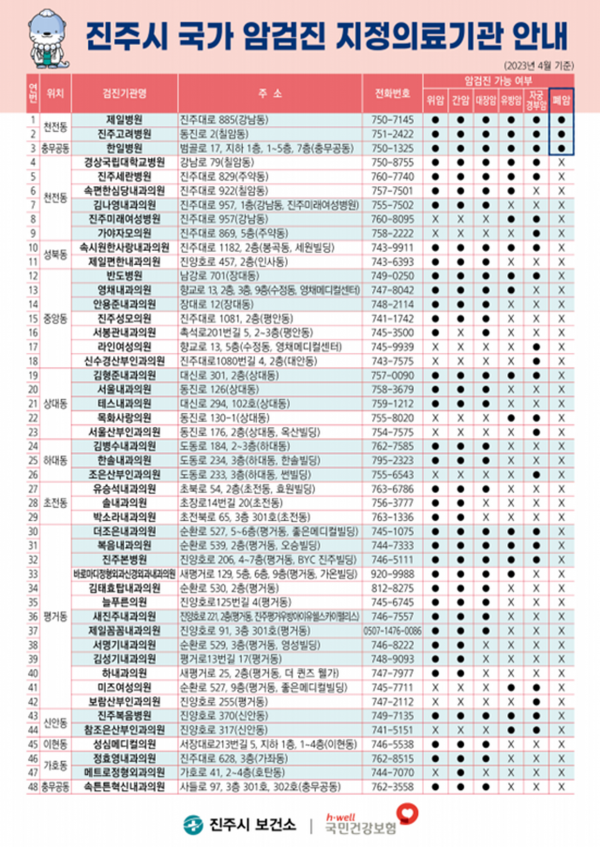진주시는 우리나라 사망원인 1위인 암 예방의 중요성을 알리고 2023년도 국가 암 검진 대상자의 수검률을 높이기 위해 집중 홍보에 나섰다.