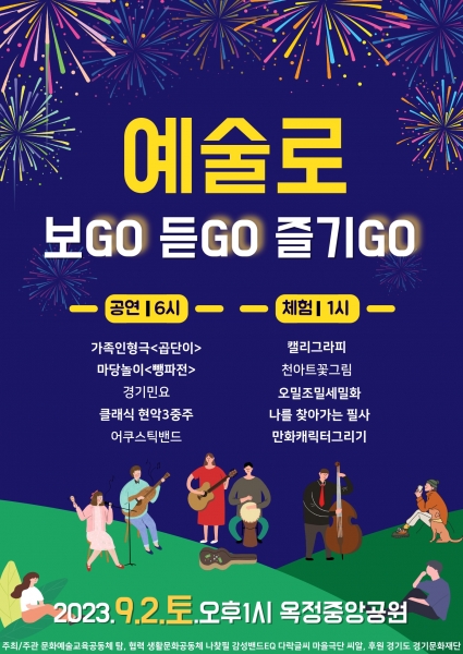 경기문화재단에서 시행하는 ‘2023 경기예술지원 모든예술31 지원사업’ 공모로 1차 서류심사, 2차 인터뷰 심사를 통해 최종 41건의 사업이 선정됐으며 양주에서는 문화예술교육공동체 탐의 ‘예술로 보GO듣GO즐기GO’가 선정됐다 ‘예술로 보GO듣GO즐기GO’는 시민들이 직접 보고 듣고 참여하며 즐김으로 이어지는 마을 축제의 형태로 운영되며 공연으로는 어른들에게는 잊혀진 향수와 아련한 추억을, 어린이에게는 풍부한 상상력을 불러 일으키는 감성 자극 인형극과 우리가락과 우리소리, 해학과 웃음이 어우러진 마당놀이‘뺑파전’과 경기민요, 클래식 현악3중주, 어쿠스틱밴드 공연이 열리고 공연과 함께 즐길 수 있는 오밀조밀세밀화, 캘리그라피, 천아트꽃그림, 만화캐릭터그리기, 필사체험 등의 부대행사를 배치해 풍성함을 더한다.