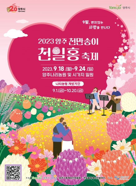 그리고 오는 9월 18일부터 24일까지는 행사 특별주간으로 나리농원과 고읍시가지 일대에서 ‘2023년 양주 천만송이 천일홍 축제’가 열린다.