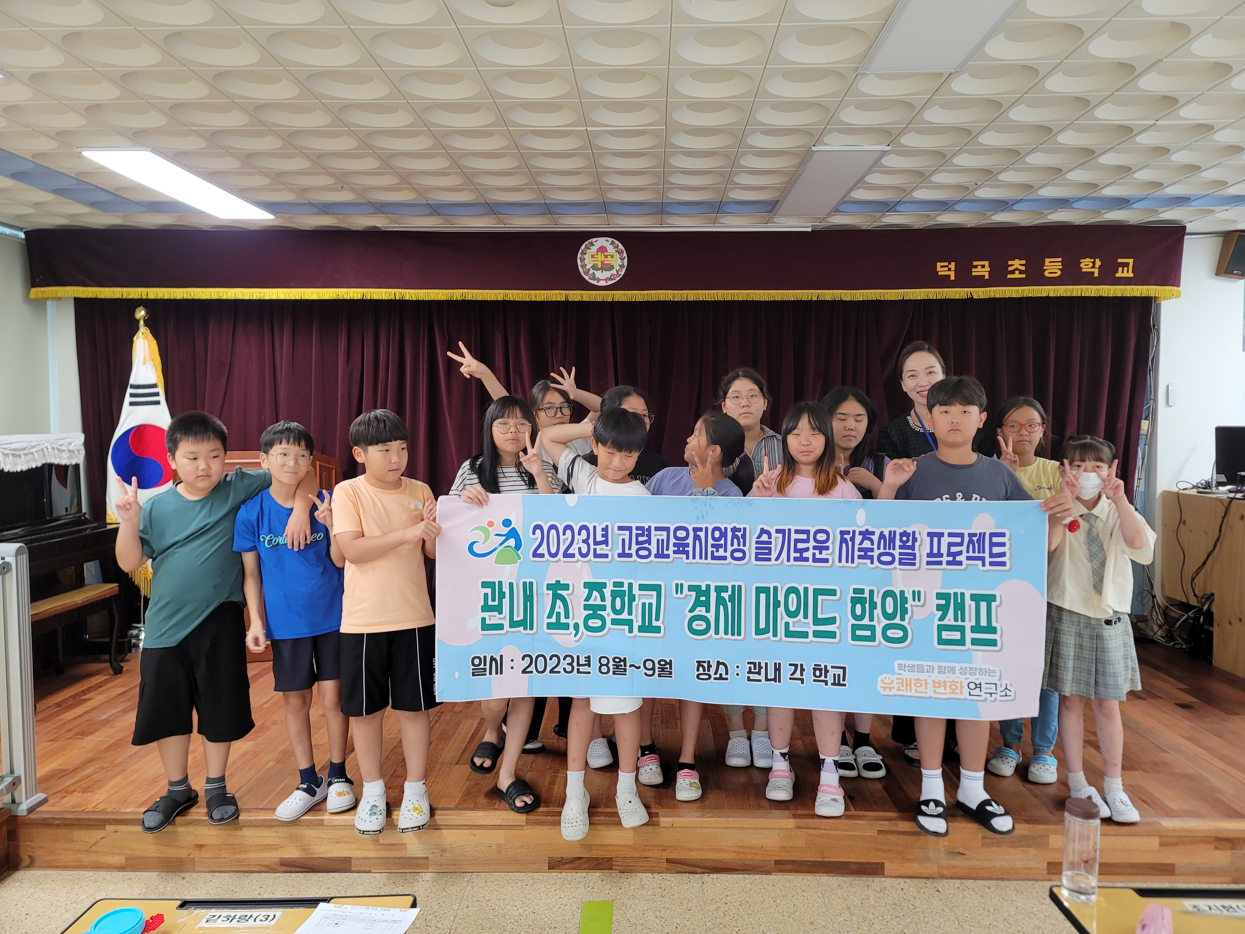 덕곡초등학교 학생들은 2023년 8월 31일에 본교 다목적실에서 어린이 금융경제 캠프 활동을 하였다.. 본 체험활동은 고령교육지원청 특색사업으로서 슬기로운 저축 생활 프로젝트를 통하여 어린이들의 경제 마인드를 함양하기 위한 목적으로 실시되었다.