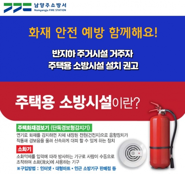 남양주소방서 반지하 주거시설도 ‘주택용 소방시설’ 설치하세요