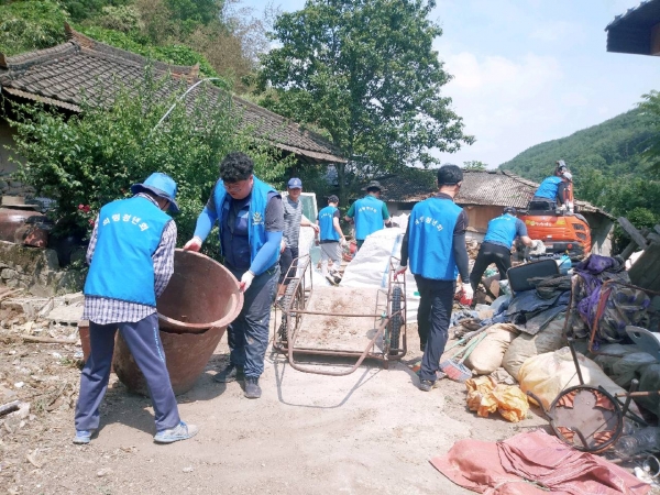 환경과와 지정면 직원들은 슬레이트 지붕철거와 청소, 폐기물처리를 맡았다.