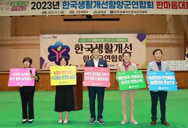 [금요저널] 함양군은 9월 1일 오전 고운체육관에서 함양농업을 혁신적으로 견인하는 농촌여성리더 육성을 위한 ‘2023년 한국생활개선함양군연합회 한마음대회’를 개최했다.