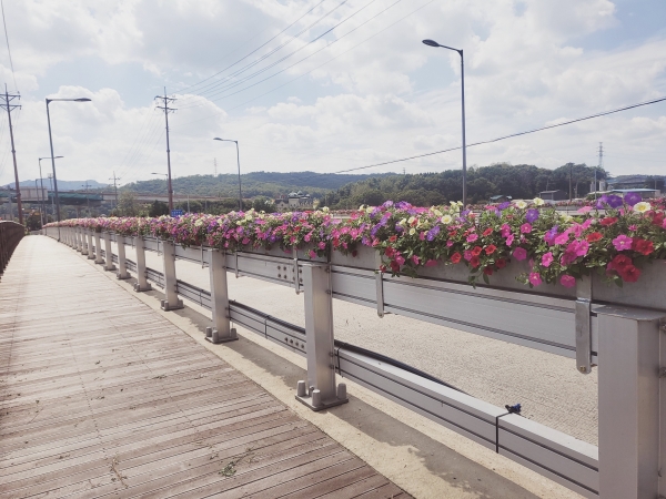 [금요저널] 양주시는 연중 꽃이 피는 아름다운 시가지 조성과 볼거리 제공을 위해 관내 주요 도로변 교량에 꽃걸이대 화분을 설치했다고 밝혔다.