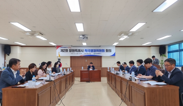 [금요저널] 창원특례시는 지난 1일 의회 대회의실에서 위원장인 하종목 제1부시장 주제로 ‘제2회 적극행정위원회 회의’를 개최했다고 밝혔다.