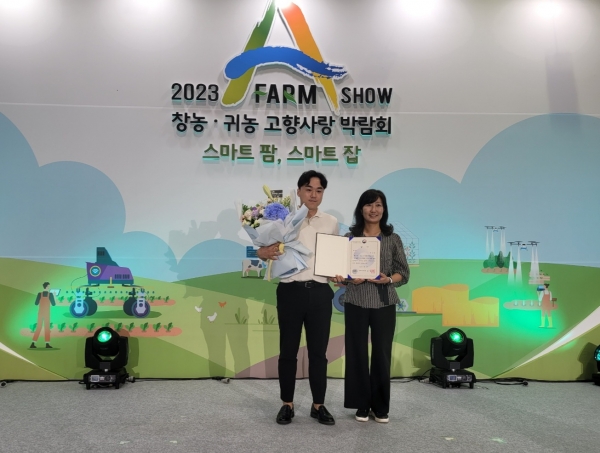 [금요저널] 거창군은 지난 3일 서울시 양재동 aT센터에서 열린 ‘2023 에이팜쇼 창농·귀농 고향사랑 박람회’ 공모전에서 청년경영실습임대농장 임차인 이건희 씨가 ‘농림축산식품부 장관상’을 수상했다고 밝혔다.