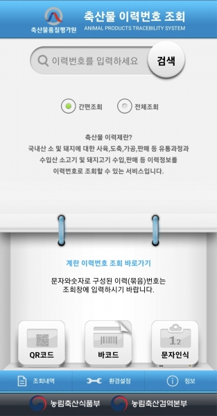 또한 소비자는 ‘축산물 이력정보’앱에서 이력번호를 조회하면 품종 성별 출생일자 농장경영자 사육지 예방 접종과 질병 검사 정보 등 축산물 이력 정보를 편리하게 확인할 수 있다.