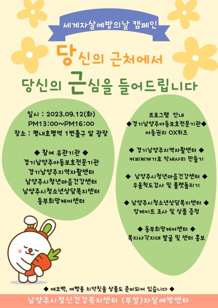 남양주시자살예방센터, 자살 예방의 날 맞이 캠페인 실시