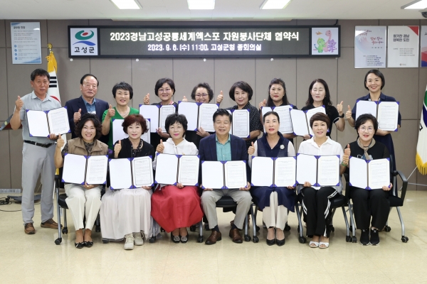 [금요저널] 경남고성공룡세계엑스포조직위원회는 9월 6일 군청 중회의실에서 고성군자원봉사협의회를 비롯한 17개 사회단체와 엑스포 성공개최를 위한 자원봉사 업무 협약을 체결했다.