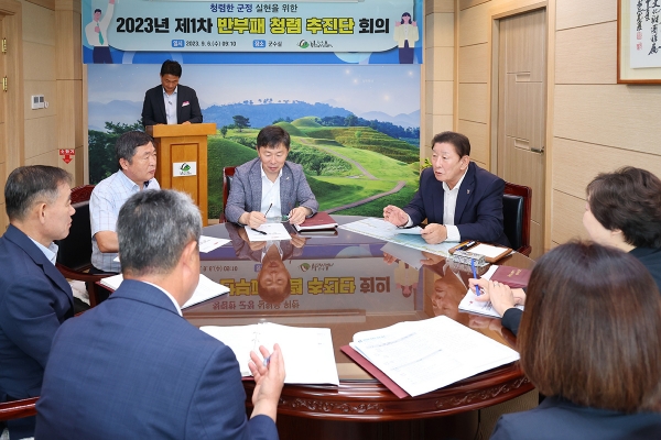 이번 회의는 기관장의 반부패 의지를 표명하고 조직 내 청렴 시책 추진 동력을 확보해 내실 있는 반부패 추진 기반을 마련하고자 개최됐으며 단장인 조근제 군수를 비롯해 부군수, 국·소장, 기획감사담당관이 참석했다.