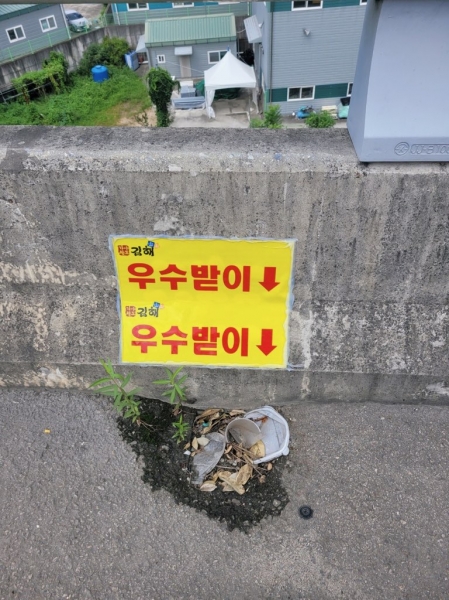우수받이 안내표지 스티커는 최근 태풍, 집중호우 등으로 빗물에 쓸려온 이물질이 우수받이를 막아 상가, 공장 등으로 빗물이 역류해 피해가 발생하고 있으나, 우수받이 안내표지를 설치함으로써 신속하게 위치를 확인해 이물질을제거하는데 도움을 줄수 있을것으로 기대하고 있으며 관내 침수위험도로 등100개소 정도 설치할 계획이다.