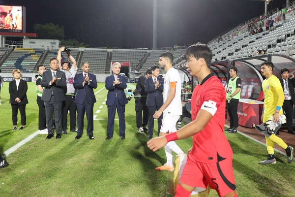 조명래 창원특례시 제2부시장은 6일 저녁 창원축구센터를 찾아 한국 대표팀을 격려하고 “12년 만에 우리 시에서 축구 국가대표 경기가 개최되는 만큼 시민들의 많은 관람과 응원을 부탁드린다”며 “경기의 성공적 개최를 위해 마지막까지 최선을 다하겠다”고 전했다.