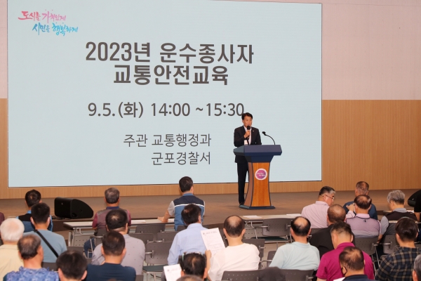 [금요저널] 군포시와 군포경찰서는 지난 5~6일 시청 대회의실에서 시민 친절서비스 및 교통질서 의식 함양을 위한 ‘2023년 운수종사자 교통안전교육’을 실시했다고 7일 밝혔다.