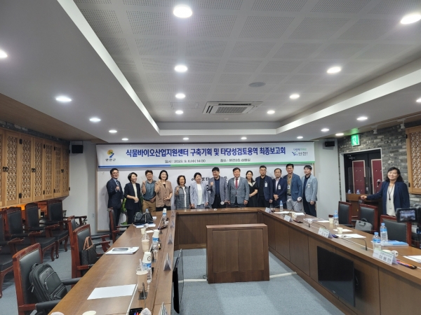 이날 최종보고회에서는 연천BIX 은통일반산업단지 내 계획 중인 식물 바이오 산업지원센터에 대한 과업개요, 환경 및 현황분석, 실행계획수립 등에 대한 설명으로 진행됐다.