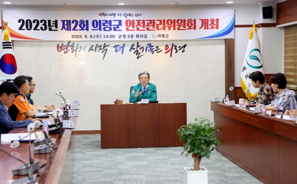 [금요저널] 의령군은 9월과 10월에 개최 예정인 2023 의령 리치리치 페스티벌 등 각종 지역축제를 앞두고 지난 6일 군청 2층 회의실에서 군수 등 위원 9명이 참석한 가운데 2023년 제2회 안전관리위원회를 개최했다고 밝혔다.