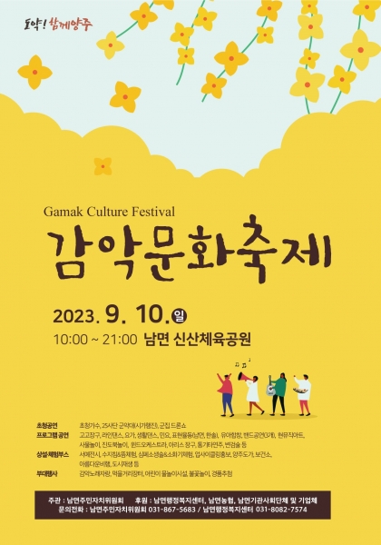 부대행사로는 다채로운 공연을 비롯해 감악노래자랑, 불꽃놀이, 경품 추첨 에어바운스 운영, 다양한 먹거리 장터가 마련된다.
