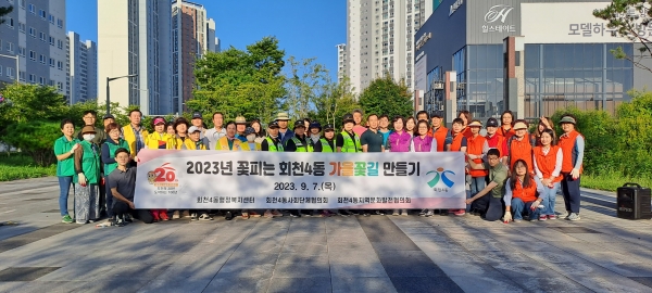 [금요저널] 양주시 회천4동 행정복지센터는 사회단체협의회와 함께 ‘2023년 꽃피는 회천4동 가을꽃길 만들기’꽃묘 식재 활동을 진행했다고 7일 밝혔다.