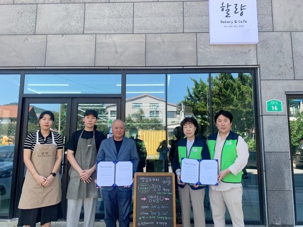 [금요저널] 함양읍 지역사회보장협의체는 지난 7일 함양 베이커리 맛집으로 소문 난 카페 할량 함양점과“함양읍 하나 더 나눔”협약을 체결했다.