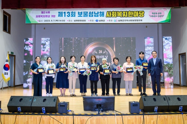 [금요저널] 남해군지역사회보장협의체는 지난 7일 사회복지의 날을 기념해 남해문화센터에서 사회복지종사자, 협의체 위원, 내빈 등 400여명이 함께한 가운데 제13회 보물섬 남해 사회복지한마당 행사를 개최했다.