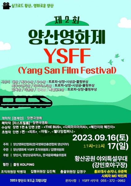 ‘양산영화제’는 양산영화인협회가 주최하고 YSFF 조직위원회와 집행위원회가 주관하며 양산시, 양산시의회, 양산상공회의소 등 여러 양산의 기업과 단체들이 후원을 하는 두 번째 영화제이다.