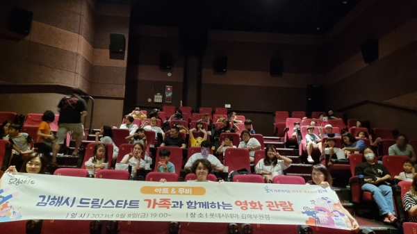 [금요저널] 김해시 드림스타트는 지난 8일 롯데시네마 김해부원점에서 드림스타트 아동, 양육자 80명과 함께 ‘아트 앤 무비’ 영화 관람 행사를 가졌다고 11일 밝혔다.