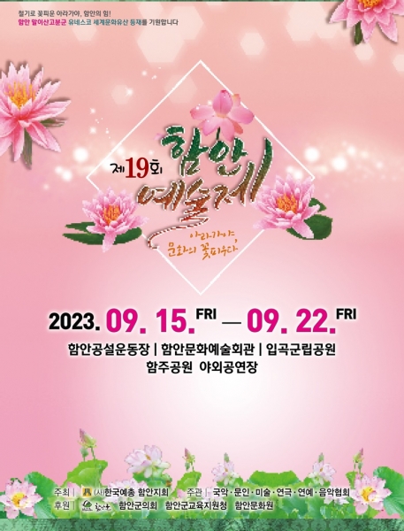 이강섭 한국예총 함안지회장은 “이번 예술제를 통해 함안 문화예술이 더욱 발전하는 계기가 되기를 기대하며 보다 많은 군민들이 함께 행사를 즐겨주시기 바란다”고 말했다.