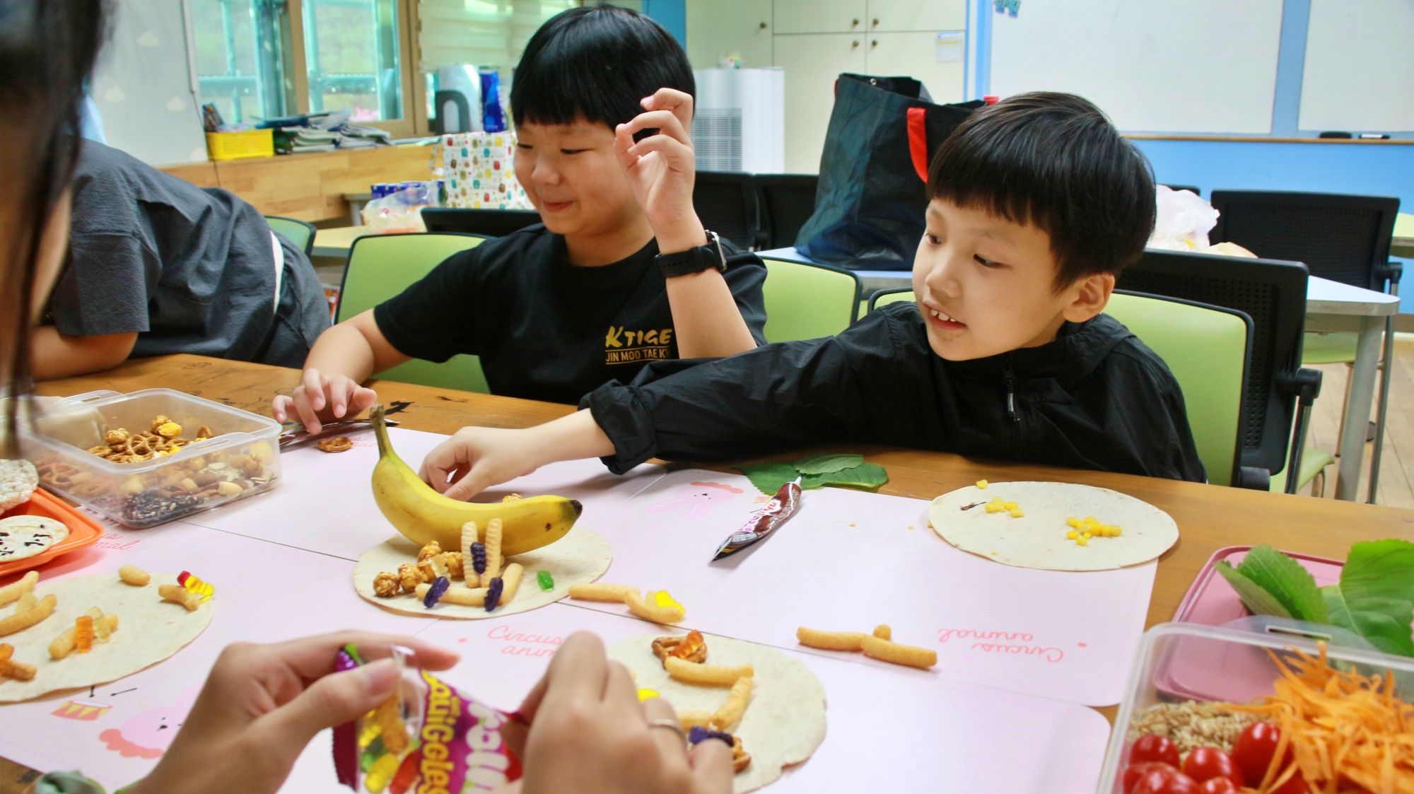 또띠아와 각종 식재료를 활용해서 감정 표현하기 만들기 체험을 했는데, 이 체험을 통해 함께 이야기하고 함께 체험함으로써 자신과 타인의 감정을 표현하는 기회가 되었고 다른 사람을 이해하는 기회가 되어서 좋았다고 했다.