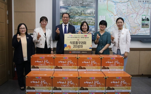 [금요저널] 지난 9월11일 장유1동에서 국제위러브유운동본부가 추석 명절을 앞두고 행정복지센터에 100만원 상당의 식료품 세트를 전달했다고 밝혔다.