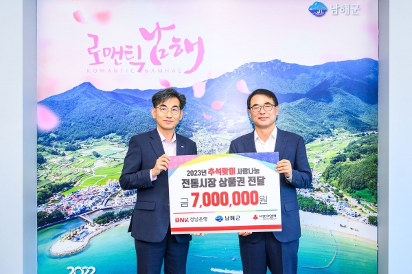 [금요저널] BNK 경남은행 남해지점은 11일 남해군청을 방문해 전통시장 상품권 700만원을 기탁했다.