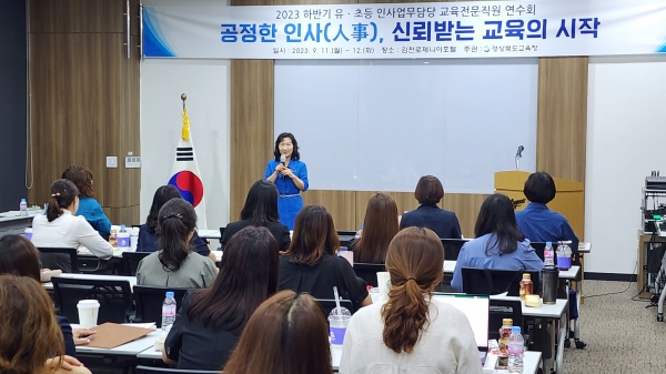 [금요저널] 경북교육청은 11일부터 12일까지 양일간 김천 로제니아호텔에서 교육지원청, 직속기관 유·초등 인사업무담당 교육전문직원 60명을 대상으로 역량 강화 연수를 실시했다.