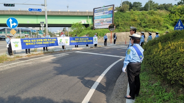 [금요저널] 새마을교통봉사대 남양주시지대는 지난 10일 나용자 대장을 비롯한 각 지구대 대장 및 대원 35여명이 참여한 가운데 사능IC 고속도로 입구에서 추석맞이 교통안전 캠페인을 실시했다.
