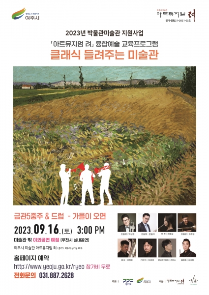 [금요저널] 여주시 미술관 ‘아트뮤지엄 려’에서는 2023년 9월 16일 오후 3시, 미술전시와 음악을 함께 보고 들으며 곡의 해설까지도 들을 수 있는 융합예술교육 ‘클래식 들려주는 미술관’ 프로그램을 진행한다.