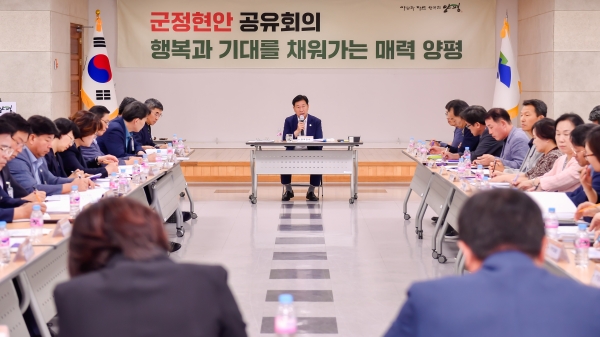지난 11일 개최된 군정현안 공유회의에서는 무료법률서비스 지원, 고향사랑 기부제 활성화, 주민 편의 증진을 위한 관내 체육시설 예약시스템 구축, 신속한 인·허가 처리를 위한 협의 담당 팀장 책임제 운영, 관리의사 업무대행 의료인 지정 운영 등 우리 군에 반영 가능한 정책들에 대한 논의가 진행됐으며 장·단기적으로 면밀한 검토를 거쳐 정책으로 발전시켜 나간다는 방침이다.