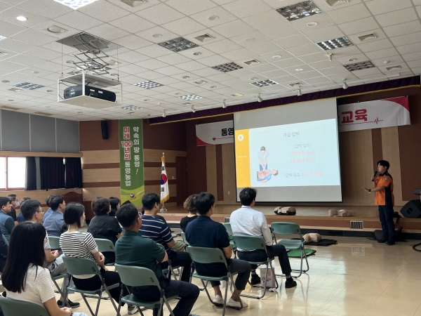 이번 교육은 응급상황 발생 시 신속한 대처가 가능하게 함으로써 직원 및 시민들의 생명보호에 기여하고 현장 실전 능력을 키우기 위해 통영소방서와 연계해 교육을 진행한다.