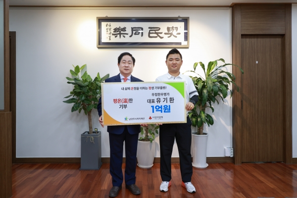 [금요저널] 남양주시 진접읍에 소재한 우정한우명가 유기환 대표는 12일 지역 내 어려운 이웃을 위해 1억원 기부를 약정하며 남양주시복지재단의 평생 기부 프로그램인 ‘평온한 기부’에 18번째로 가입했다‘평온한 기부’는 1억원 이상을 일시 또는 평생 약정하는 남양주시복지재단의 기부 프로그램으로 ‘내 삶에 온정을 더하는 평생 기부 플랜’이라는 슬로건 아래 지난해 12월부터 추진되고 있다.