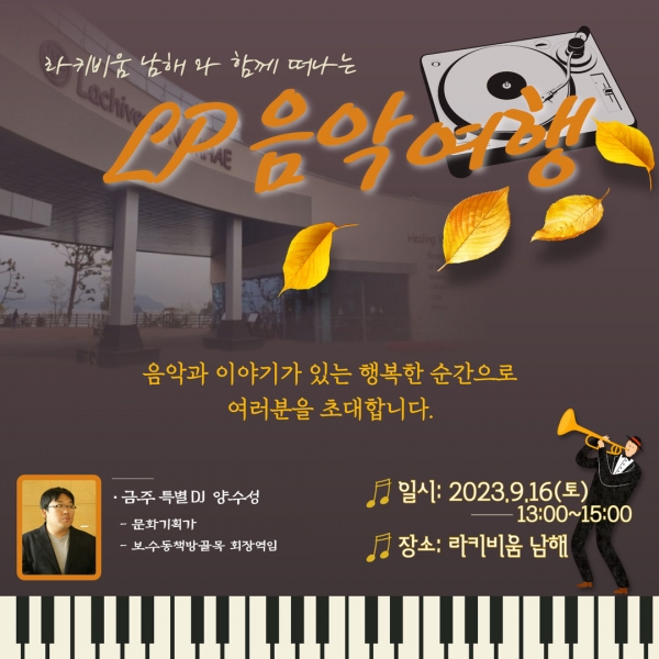 [금요저널] 복합문화공간 ‘라키비움 남해’가 오는 16일부터 정기적으로 ‘LP 음악여행’ 프로그램을 선보인다.