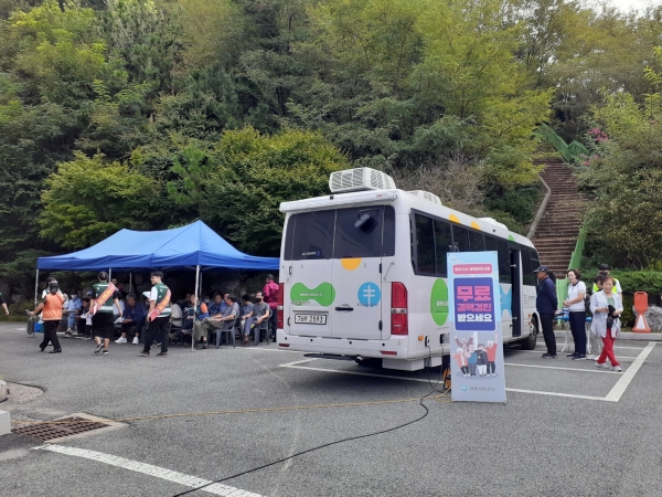 [금요저널] 사천시가 13일 사천시보건소 주차장에서 결핵 감염에 취약한 시청 현업업무종사자와 65세 이상 어르신들을 대상으로 ‘찾아가는 결핵 검진사업’을 실시했다.