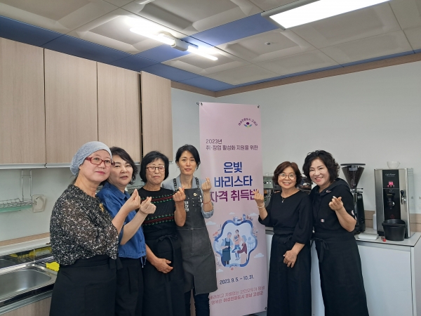 ‘은빛바리스타’는 공개모집을 통해 60세 이상 취·창업을 필요로 하는 5명을 모집, 주 2회 커피전문가 자격증이 있는 전문 강사가 커피학 이론 각종 커피 제조법 자격 검점 대비 실기 연습 자격검정 시행 등을 강의하며 전문 분야 일자리를 희망하는 장년 여성들이 커피전문가 자격증을 취득하는 것을 도울 예정이다.