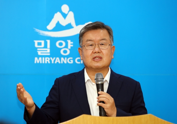 [금요저널] 박일호 밀양시장이 13일 시청 브리핑룸에서 밀양의 새로운 도약을 위한 ‘2030 밀양 견인 新성장동력사업’ 발표에 나섰다.