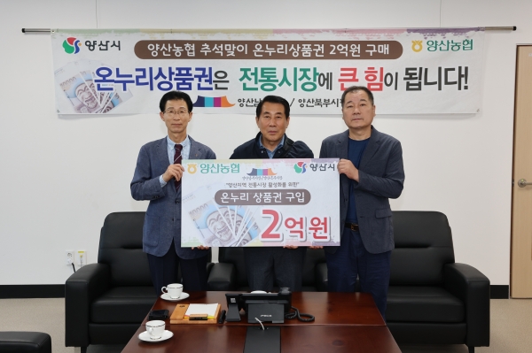 [금요저널] 양산시가 추석을 앞두고 전통시장 등 소상공업소에 활력을 불어넣고자 다양한 지원책을 추진하고 있는 가운데 온누리상품권을 대거 구입한 지역 농협에 고마움을 표했다.