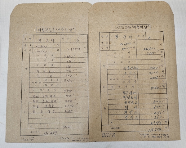 그중 1970년대 공무원 봉급명세서는 오늘날에는 종이문서로 받아볼 수 없는 것이어서 더 흥미로운 자료가 된다.