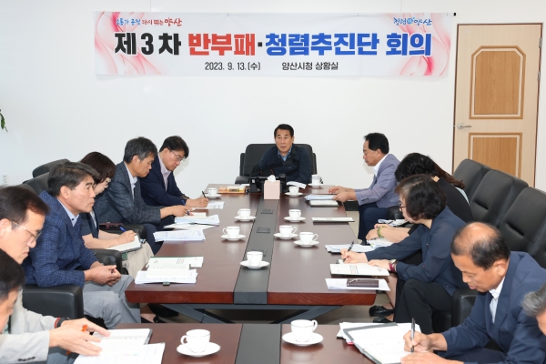 청렴 정책의 공유 및 점검, 부패 취약분야 개선책 발굴, 고위직 공직자의 청렴 결의 표명 등 청렴도 향상을 위한 회의를 계속적으로 개최해 양산시 청렴도 향상을 위한 노력을 실천적이고 행동적으로 추진하고 있다.