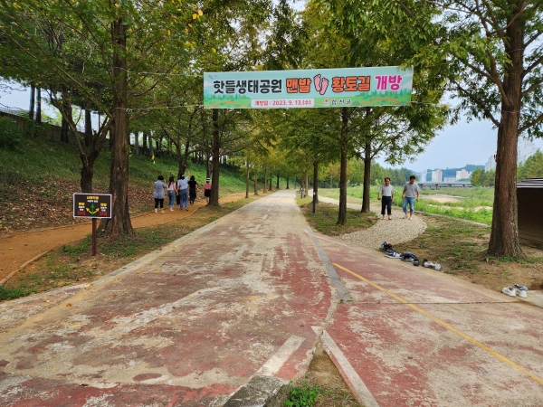 합천읍은 핫들생태공원 내 역점사업으로 추진한 맨발산책로 조성이 2개월여 간의 공사기간을 거쳐 마무리돼 군민들에게 개방했다고 밝혔다.