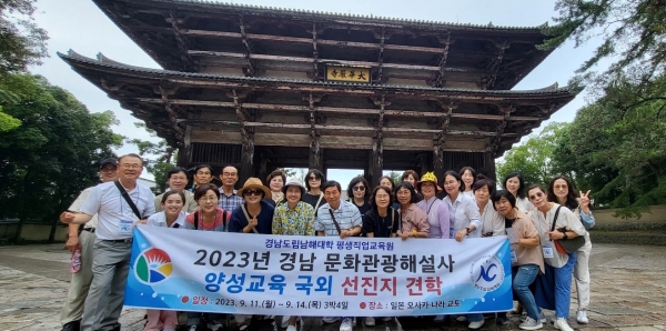 이번 견학수업에 참가한 경남 문화관광해설사들은 나라 동대사·사슴공원, 오사카 신사이바시·도톤보리, 교토 청수사·금각사, 고베 메리켄 파크 등 일본 주요 관광지와 문화유적지를 탐방하게 된다.